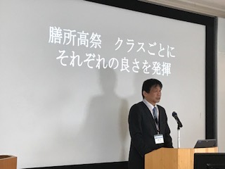 冨江校長先生は、式辞の中で「1年生の合唱コンクールでは歌に込められた皆さんの思いはしっかりと届きました。2年生の修学旅行の膳所高祭ではクラスごとにそれぞれの良さが発揮されていました。」とまずは振り返り、「集団には、同じ場所にいる人の集団である『グループ』、共通の目標に向けて協力する『チーム』、強く結束した『ワンチーム』があります。膳所高校は、クラス、学年、学校がワンチームです。」と述べられ、最後に3年生を「受験は団体戦。ワンチームで受験に臨み、それぞれの志望の実現を!!」と激励されました。