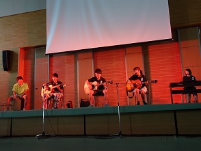 午後の部は、恒例の吹奏楽班の演奏からスタートしました。「一狩り行こうぜ!吹奏楽班湖風祭ステージ~百花繚乱~」そのタイトルにふさわしく、班員全員による演奏やダンスは迫力があり、観客を魅了しました。心躍る軽快なリズムでは手拍子が湧き起こり、ソロパートではしっとりと聴かせて「上手い」と観客をうならせ、「英雄の証」や「ラプンツェル」など4曲を披露した後には、アンコールにも応えてくれました。全員が笑顔で楽しんで演奏している光景は、私達を幸せな気分にさせてくれました。