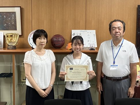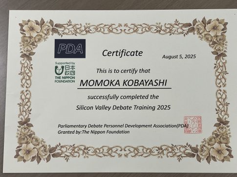 去る7月30日(水)~8月5日(火)に 一般社団法人 パーラメンタリーディベート人材育成協会(PDA)主催のPDAシリコンバレーディベート研修2025に参加された英語班 小林 百花 さん(2年1組)の研修報告会を校長室で実施いたしました。