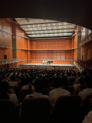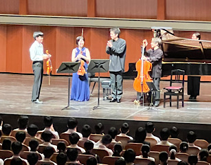 アンコール曲が終わった後も、惜しむような拍手がしばらく続きました。世界の第一線で活躍する音楽家と同じ空間で過ごすことができたこの日、膳所高校から広がる世界へのつながりを改めて実感する芸術鑑賞会となりました。一線で活躍するプロフェッショナルの生き様に触れる貴重な経験は、いつか一歩を踏み出す力が必要になったときに役立つ、そんな予感をさせつつ演奏会は幕を閉じました。