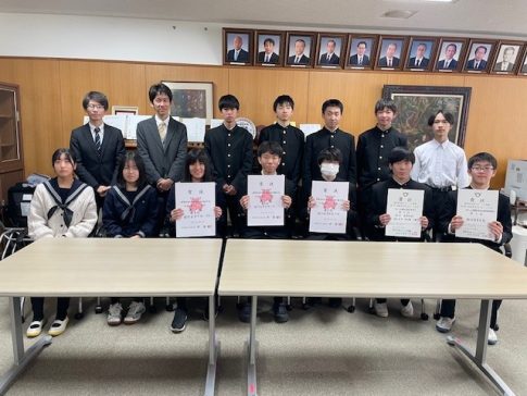 男子団体 優秀校 森田 康介 (2年) 田中 響流 (2年) 釣 凛太郎(2年)