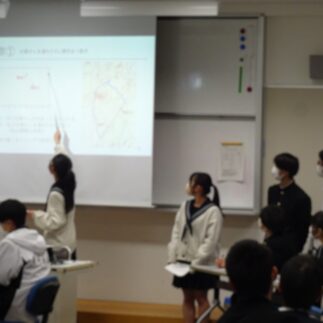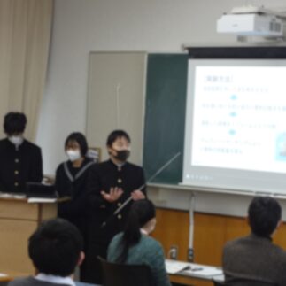 2年生普通科は1年間、班にわかれて、それぞれにテーマを設定し、探究に取り組んできました。本発表会では、発表の分野に沿って分科会にわかれ、それぞれの分科会に指導助言者として大学の先生方をお招きし、これまでの研究の成果をパワーポイントにまとめて発表しました。