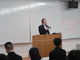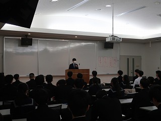 代表生徒1名が、京都大学特別授業を受講して学んだこと・感じたことを報告した後、修了証を受け取りました。